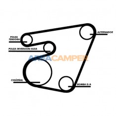 Poly-V ribbed belt 21.36x1765 mm for power steering and alternator VW T4 2.5L TDI (ACV), 01/1996-02/1999
