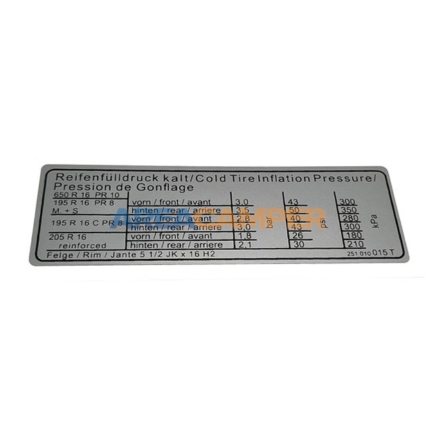 VW T3 4WD Syncro with 16" rim tire pressure sticker, 118x40 mm